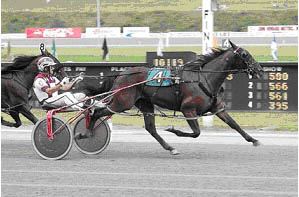 but fell short by a whisker. Billy Haughton won another Adios with his horse